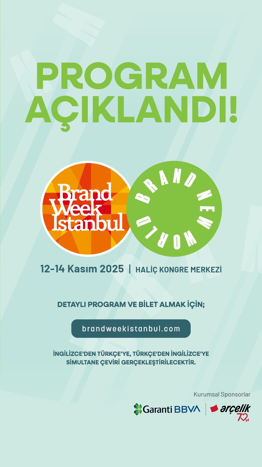 12-14 Kasım 2025 tarihleri arasında Haliç Kongre Merkezi’nde gerçekleşecek olan etkinlik, bu yıl “Brand New World” temasıyla dünyanın dört bir yanından yaratıcı liderleri, sektör profesyonellerini ve ilham veren isimleri bir araya getirecek.
